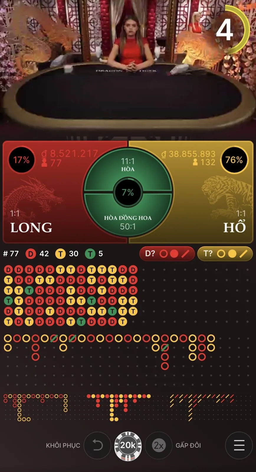- Bước 2: Trước khi hệ thống chia bài, người chơi sẽ tiến hành đặt cược vào cửa Hổ hoặc cửa Long.