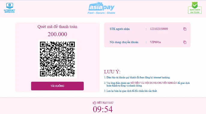 - Cách 1: Chuyển tiền bằng VIPQR ngân hàng:
